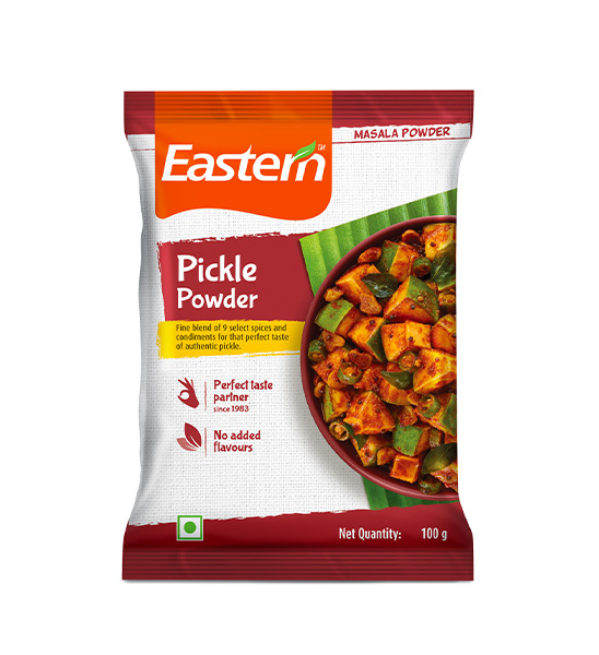 Eastern Pickle Powder is a vegetarian spice mix by Eastern Condiments Pvt. Ltd. used to create homemade pickles or add authentic Indian flavor to dishes. It contains a magical blend of spices such as mango, lemon, gooseberry, garlic, and ginger, designed to provide the taste of traditional Indian pickles and preserve them for longer periods. The powder is versatile, suitable for making various types of pickles, and can also be enjoyed with other meals like rice and lentils.