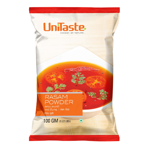 UniTaste Rasam Powder is a convenient blend of roasted and ground South Indian spices, such as coriander, cumin, black pepper, and chilies, designed to create the tangy and spicy flavor of the traditional South Indian rasam soup with ease. It is a quick way to make a flavorful rasam, enhancing meals by adding the authentic taste and aroma of homemade rasam without needing to grind individual spices.