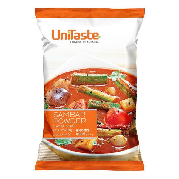 UniTaste Sambar Powder is a spice blend designed to provide the rich, aromatic, and traditional flavor of authentic South Indian sambar. It enhances the taste and aroma of the lentil and vegetable stew, making it a convenient way to prepare this staple South Indian dish for meals like rice, idli, and dosa.