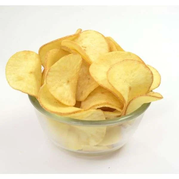 Plain, round tapioca chips are thin, crispy, and mildly salted fried wafers made from the sliced cassava root. They have a satisfying crunch and a subtle, earthy flavor that makes them a popular and simple snack. They are a light and airy alternative to traditional potato chips and are especially common in South Indian cuisine.