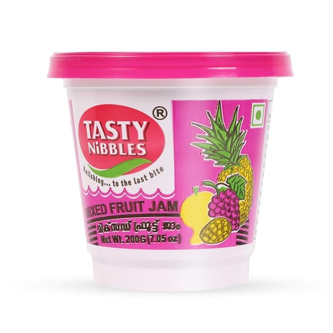 Tasty Nibbles Mixed Fruit Jam is a sweet and flavorful spread made from a blend of real fruits, offering a delightful taste and easy-to-spread consistency. It’s a versatile ingredient for breakfast or desserts, perfect for spreading on toast, parathas, or using as a filling.